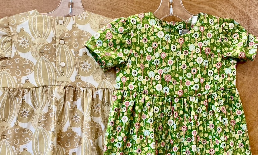Girls dresses with sleeves, Christmas pattern, assorted colors